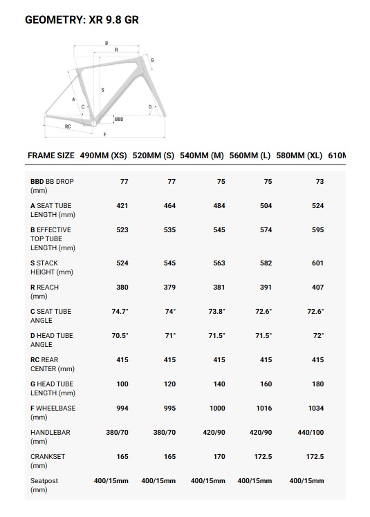 - Carbon XR Race High Modulus, Road Advanced Geometry, Disc Brake Flat Mount, BB86.5, SH dropout, Thru Axle 142x12 mm, Inner cable routing, Di2 compatible, mudguards ready.
