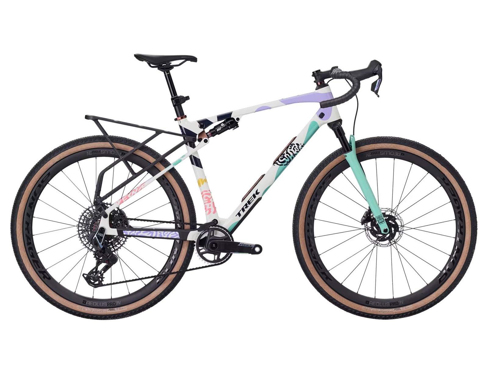 The CheckOUT SL 7 is a full-suspension gravel bike built for exploring rowdy roads, singletrack and anything else you throw its way. Its carbon frame delivers 55 mm of rear travel from a RockShox SIDluxe IsoStrut shock, while a RockShox Rudy XL fork smooths rowdy roads and trails with 60 mm of travel. It gets upgrades where they matter most, like Bontrager Aeolus Pro 3V carbon wheels, a SRAM Force AXS E1 wireless 12-speed drivetrain and a wireless RockShox Reverb AXS dropper post.