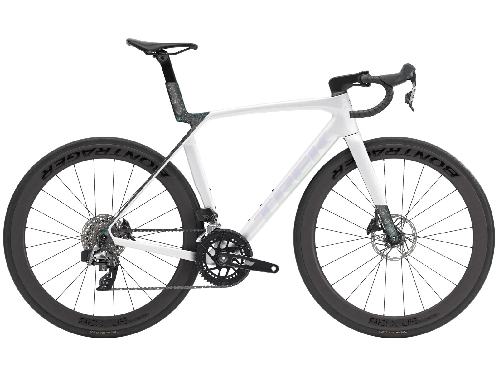 - Madone Gen 8 full carbon, tapered carbon steerer, internal brake routing, flat mount disc, 12x100mm chamfered thru axle