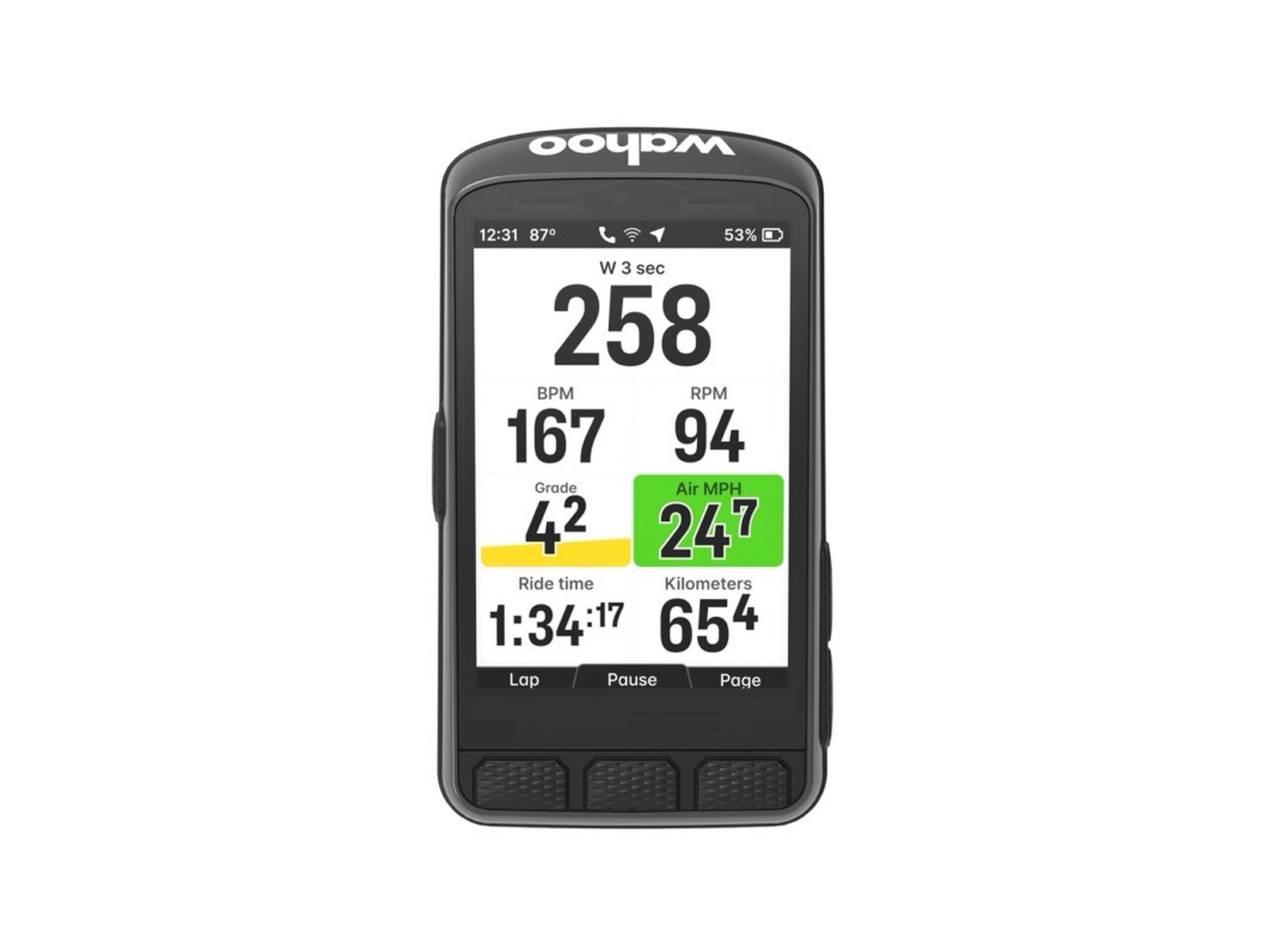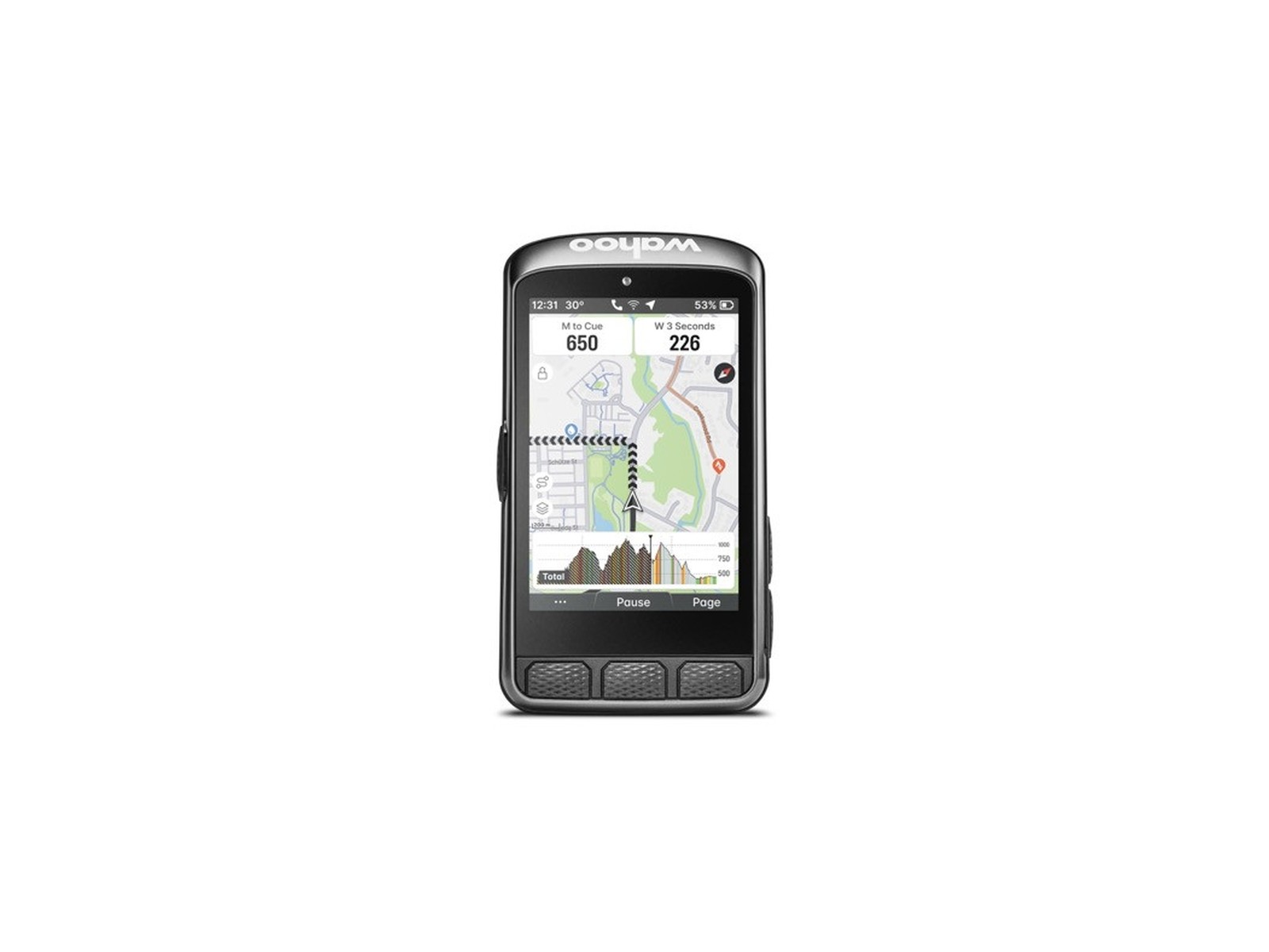ELEMNT ACE turi didelį, jautrų jutiklinį ekraną, kuris veikia be jokių pastangų, kaip ir išmanusis telefonas. Jame rodomi išsamūs žemėlapiai ir važiavimo rodikliai, todėl galite naršyti ir reguliuoti nustatymus paprastais bakstelėjimais, paspaudimais ir pabraukimais.