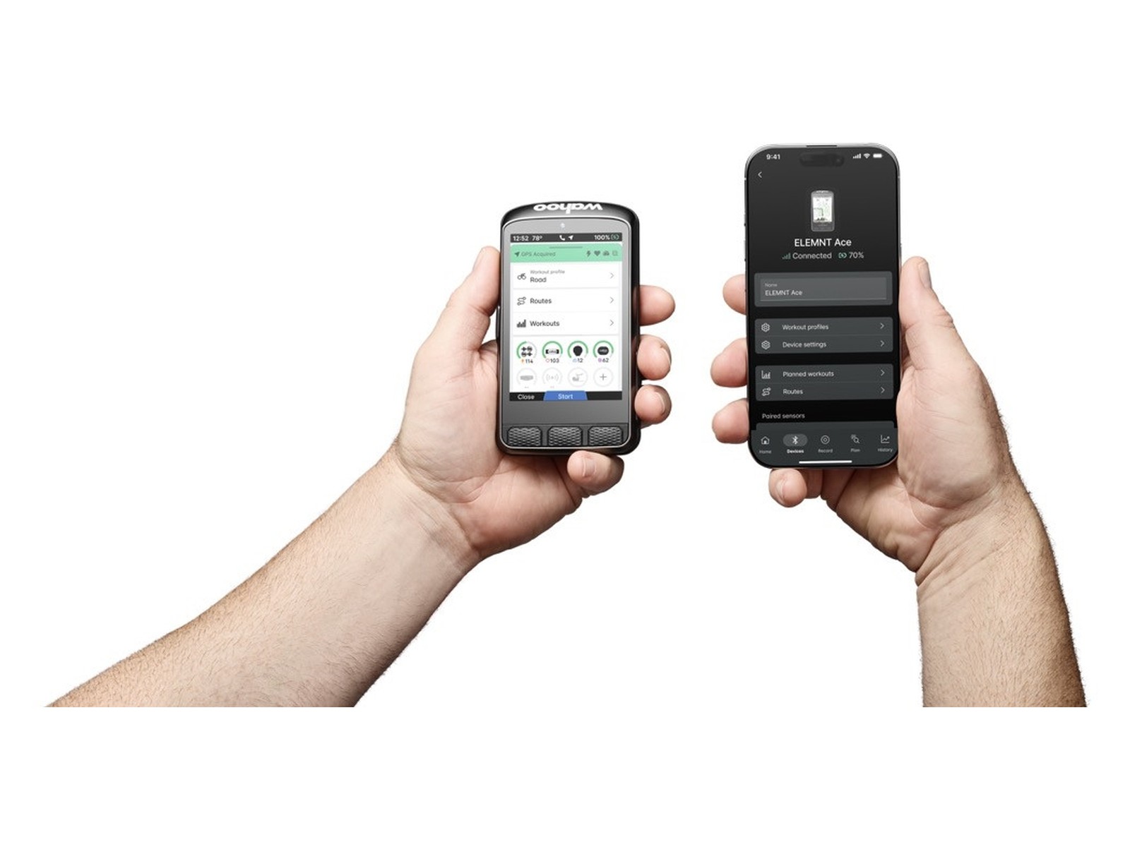 Mėgaukitės ne tik „WiFi“, bet ir „Bluetooth“ sinchronizavimo patogumu, todėl maršrutus lengva siųsti tiesiai į „ELEMNT ACE“.
