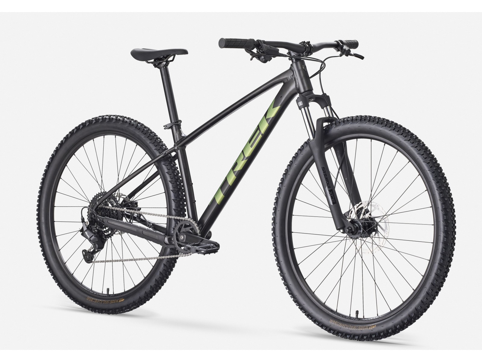 Ratukai: Bontrager Connection dvigubų sienelių ratlankiai su 29″ (didesnėse rėmo versijose) arba 27.5″ (mažesnėse) ratais ir Bontrager Montrose Comp 2.40″ padangomis – suteikia gerą sukibimą su žvyrkeliu ar takais.