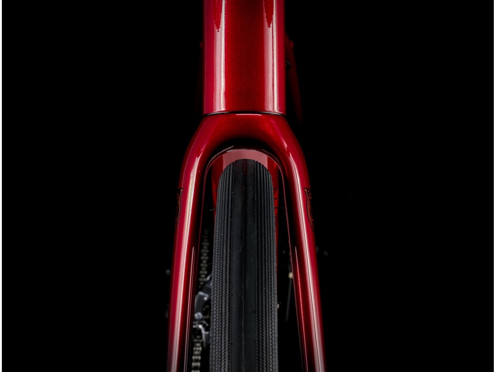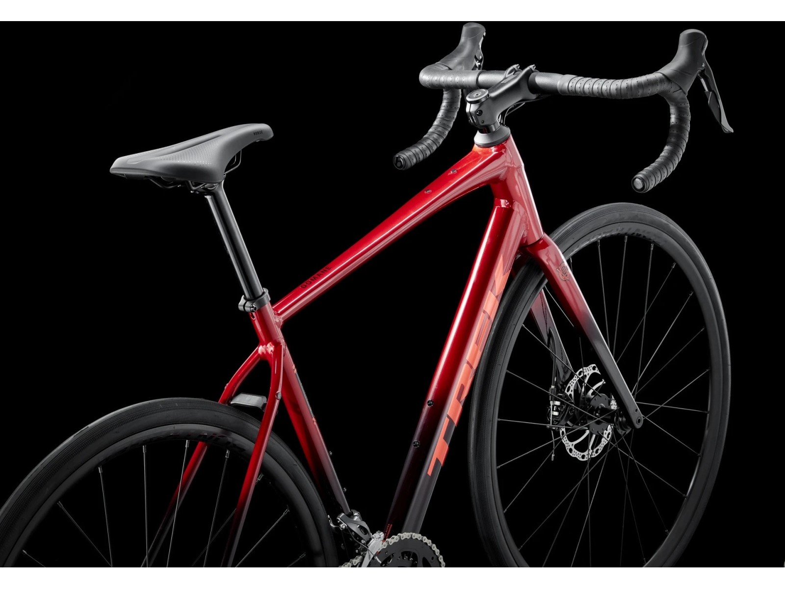 - Domane AL carbon, tapered carbon steerer, internal brake routing, fender mounts, flat mount disc, 12x100mm thru axle