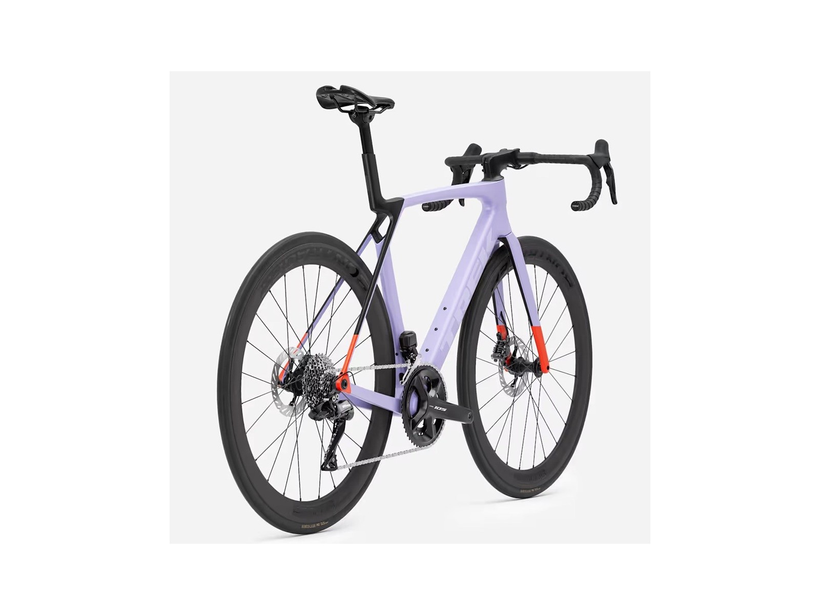- Madone Gen 8 full carbon, tapered carbon steerer, internal brake routing, flat mount disc, 12x100mm chamfered thru axle