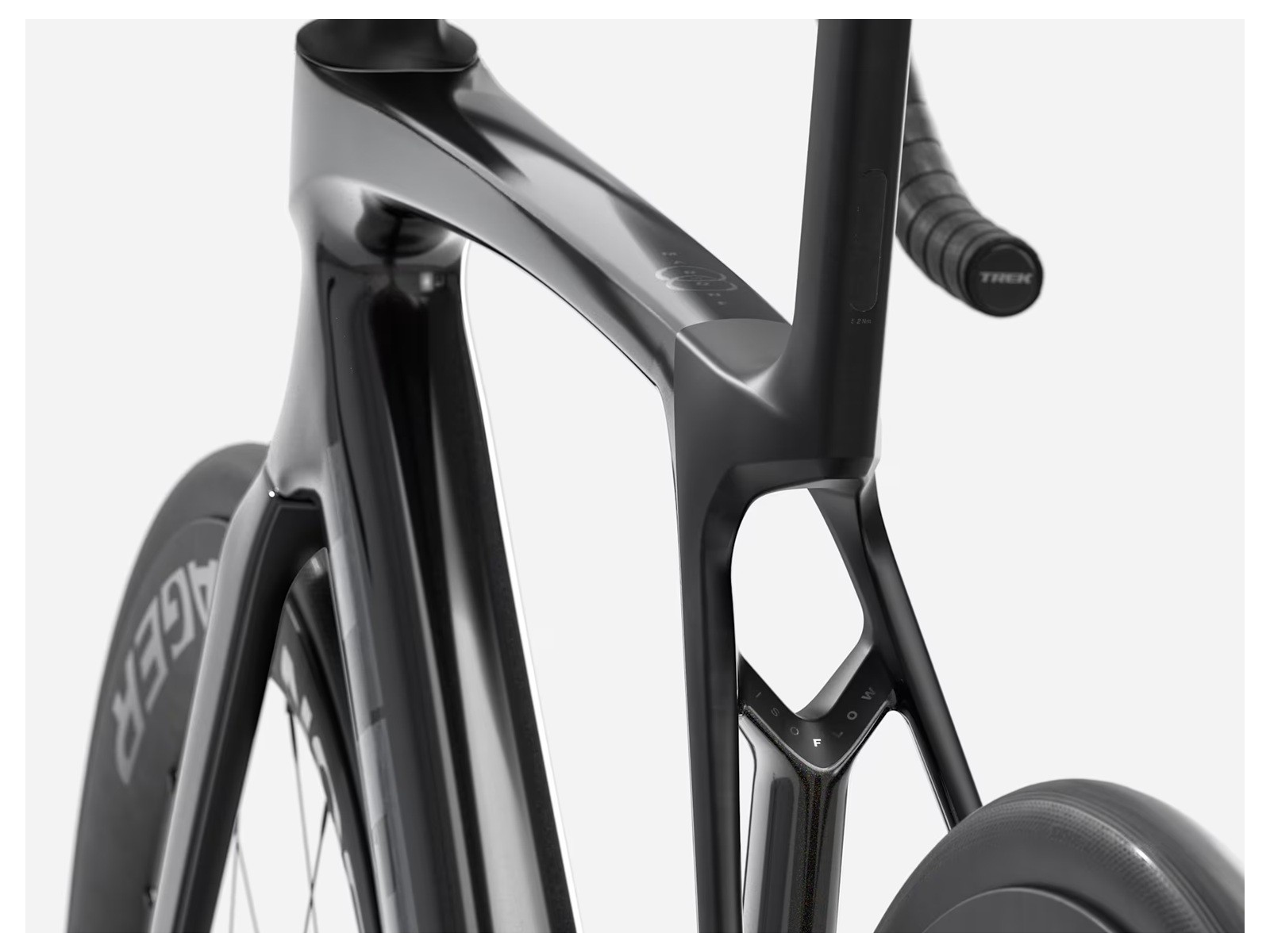 - Madone Gen 8 full carbon, tapered carbon steerer, internal brake routing, flat mount disc, 12x100mm chamfered thru axle