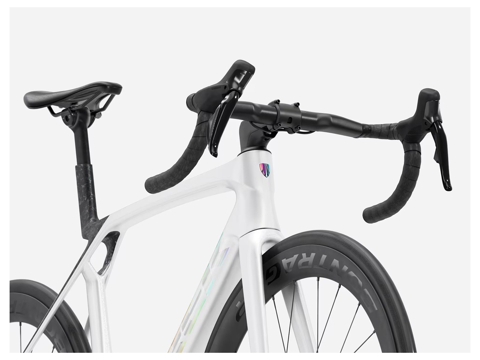 - Madone Gen 8 full carbon, tapered carbon steerer, internal brake routing, flat mount disc, 12x100mm chamfered thru axle
